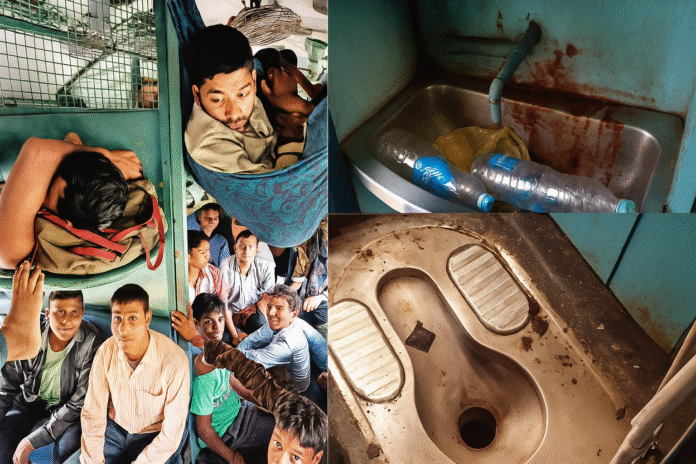 • Overcrowding is unbearable: people squeeze into every corner, hang near doors, or spread sheets on the floor to rest. Some even string hammocks between berths just to find space.